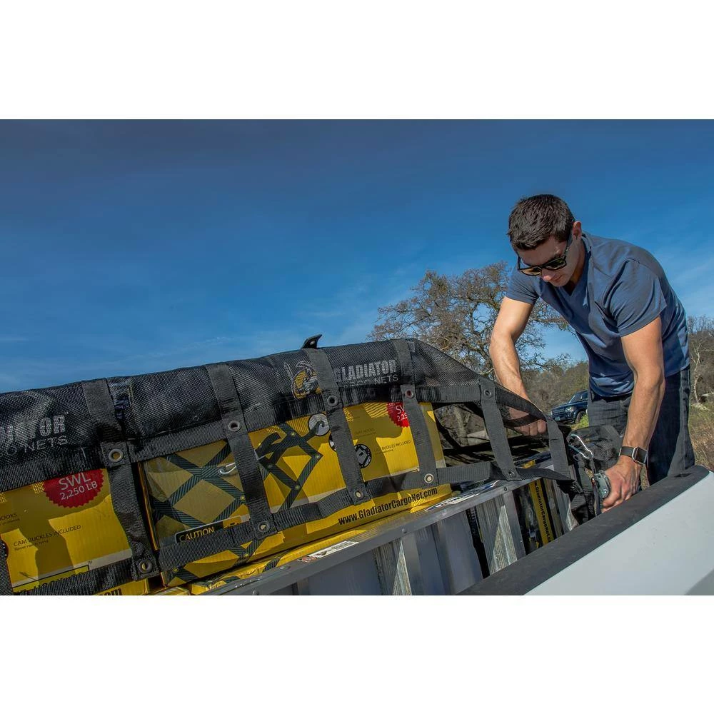 The Gladiator Cargo Net is ideal for both commercial and consumer applications. 4-hardware straps and a storage bag are included. Many sizes available, please consult the sizing guide for best fit.