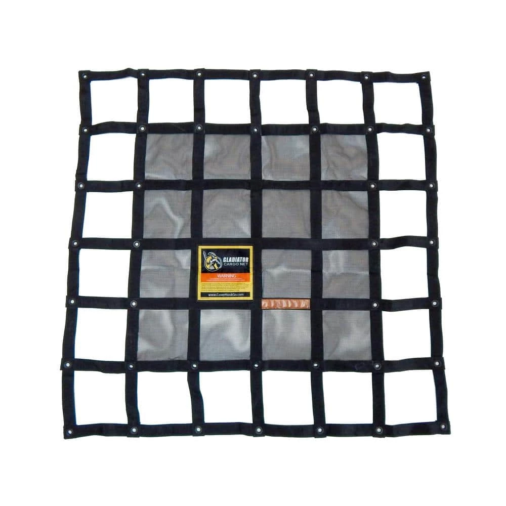 The original Gladiator Cargo Net is used by large and small fleets across the country it is the highest rated cargo net on the market. It has earned this by being easy to use, incredibly strong and durable. The integrated meshing prevents snags when securing your cargo as well as containing smaller items. Build oversized to accommodate the height of your cargo. It is the perfect cargo net for your hauling needs. The Gladiator Cargo Net is built from weatherproofed, heavy-duty 1.5″ webbing with triple-layered reinforced edges. Our fully sewn in and integrated meshing adds significant strength to the net as well. Each mesh thread is comprised of thousands of smaller threads and then coated giving it incredibly strong ripstop properties. This is what gives the net its ability to safely secure large cargo loads and take the abuse of commercial use. An added benefit is that the net will not tangle. Every cargo net comes with four hardware straps and a heavy-duty storage bag. The hardware hooks are rubber coated so that they will not scratch your vehicle.