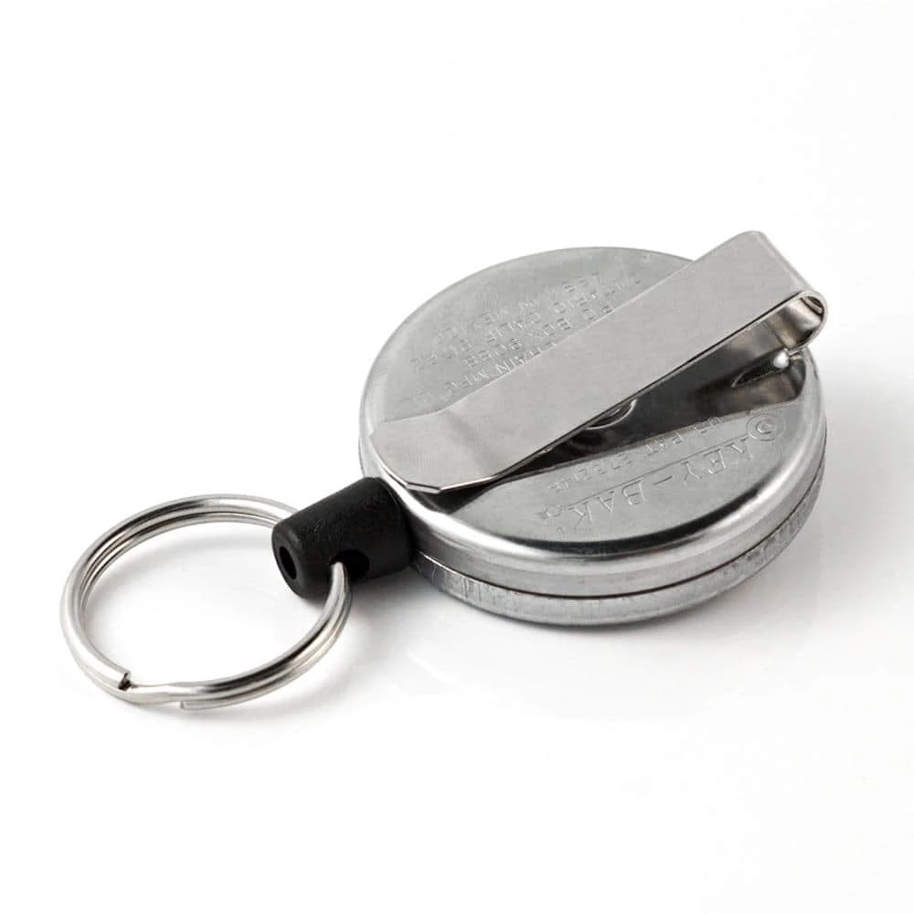 The key retractor that got KEY-BAK started in 1948, the Original retractable key chain is a heavy duty key reel that is guaranteed to outlast the competition. The Original Series retractable key chain is popular because of its vintage look and the flexibility of customizing the reel to your specifications. Choose either the retractable 24″ vintage steel chain or the retractable cord made with DuPont Kevlar fiber. Next, choose between a classic cold-rolled steel chrome plated front or a more inconspicuous black vinyl cover. Lastly, choose how you’d like to secure your key reel, with either a stationary steel belt clip, a steel belt loop or a removable rotating belt clip. Although it is often copied, there has still never been another retractable key reel that matches the quality, durability or versatility of the Original KEY-BAK Retractable Key Chain.