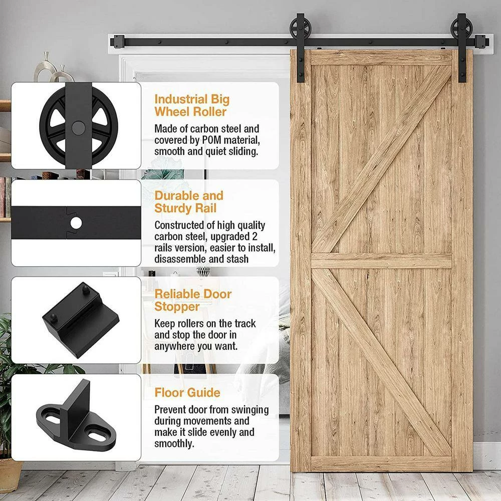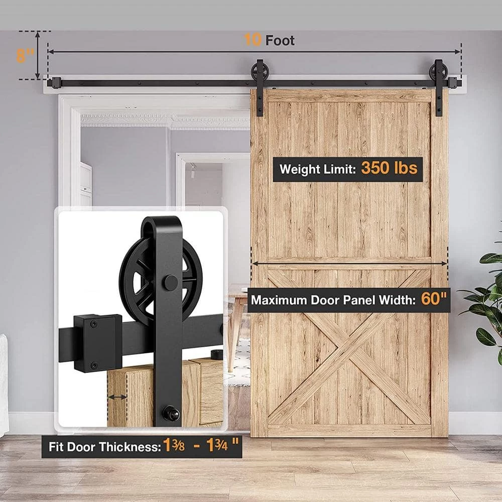 Let’s start your DIY projects with this barn door hardware. It comes with all necessary hardware with a clear instruction, giving you an easy installation experience. Crafted from premium carbon steel with matter black finish, it definitely suitable for a variety of styles of barn doors.