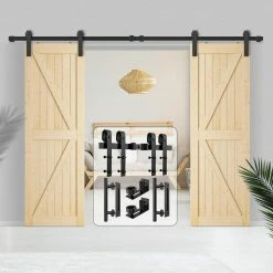 - Comes with all necessary hardware for this set of 2 barn door handles, door is not included