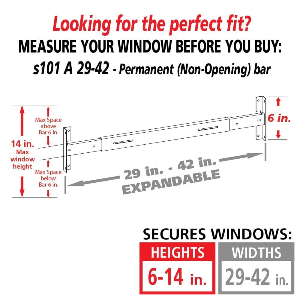 - Fits window heights from 6 in. to 14 in. with a maximum of 6 in. space above and below the security bar