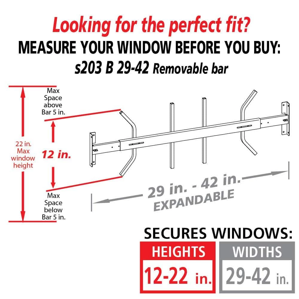 Adjustable security bar extends in height from 12 in. to 22 in.