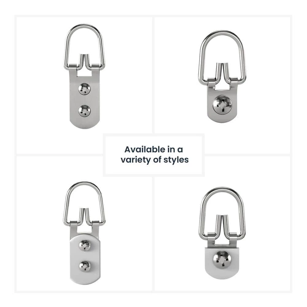 “Attach this 10-pack of OOK two-hole hangers to picture frames for showcasing your finest moments. Two holes let you drive in the included screws for a firm hold, while the D-ring pattern supports easy wall mounting. The value box contains 10 packs of two-hole hangers that support weights of up to 20 lbs., letting you create a gallery wall or separate groupings. These OOK two-hole hangers are constructed from steel for long-term use.”