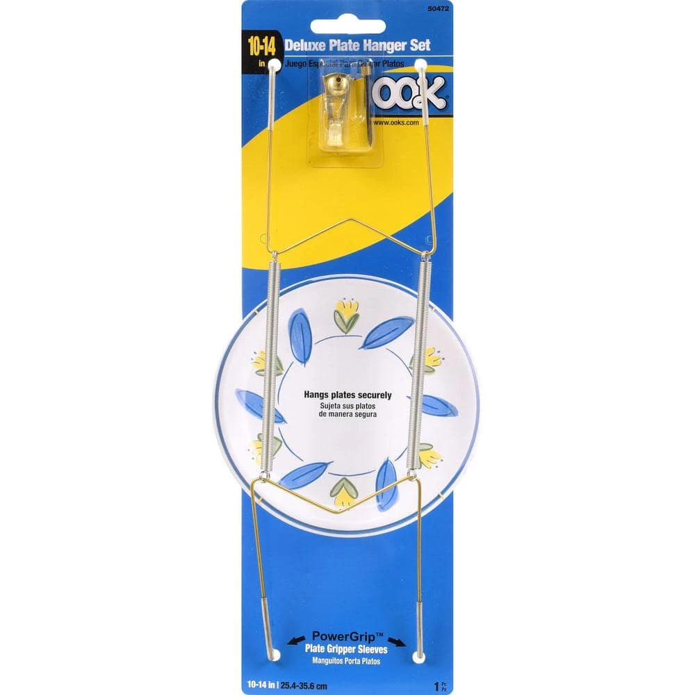 Use the OOK 30 lb. Deluxe Plate Hanger to hang plates that are 10 -14 in. This brass plate hanger has a 30 lb. maximum weight capacity and features durable steel construction.