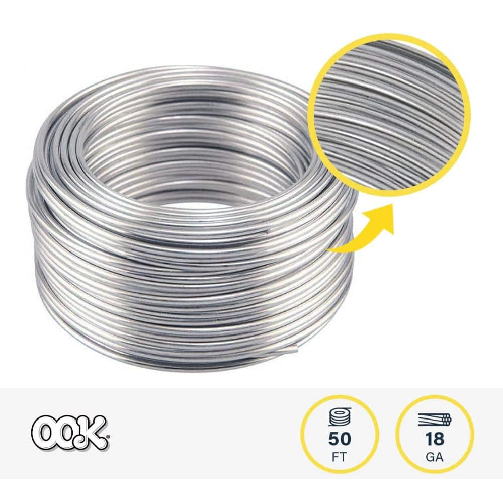 “Complete your unfinished craft projects with this OOK 50-foot 18-gauge aluminum hobby wire. A weight capacity of up to 30 lbs. makes art and decor installation simple, and the soft aluminum material keeps hands free of dirt and cuts and also resists corrosion. The single roll ensures dispensing is simple, and the gauge is easy to cut with a pair of pliers. This OOK 50-foot 18-gauge aluminum hobby wire wraps around itself and stays firmly tied to ensure your craft project stays securely fastened.”