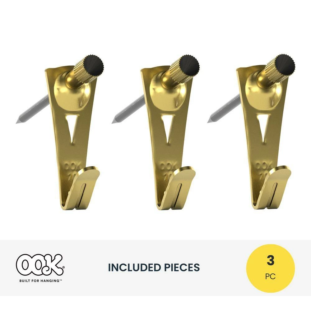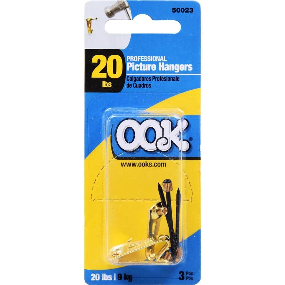Safely hang up paintings or mirrors with this Professional 20 lb. Steel Picture Hangers (3-Pack). This pack includes three hangers and nails. It should not damage your walls after use.