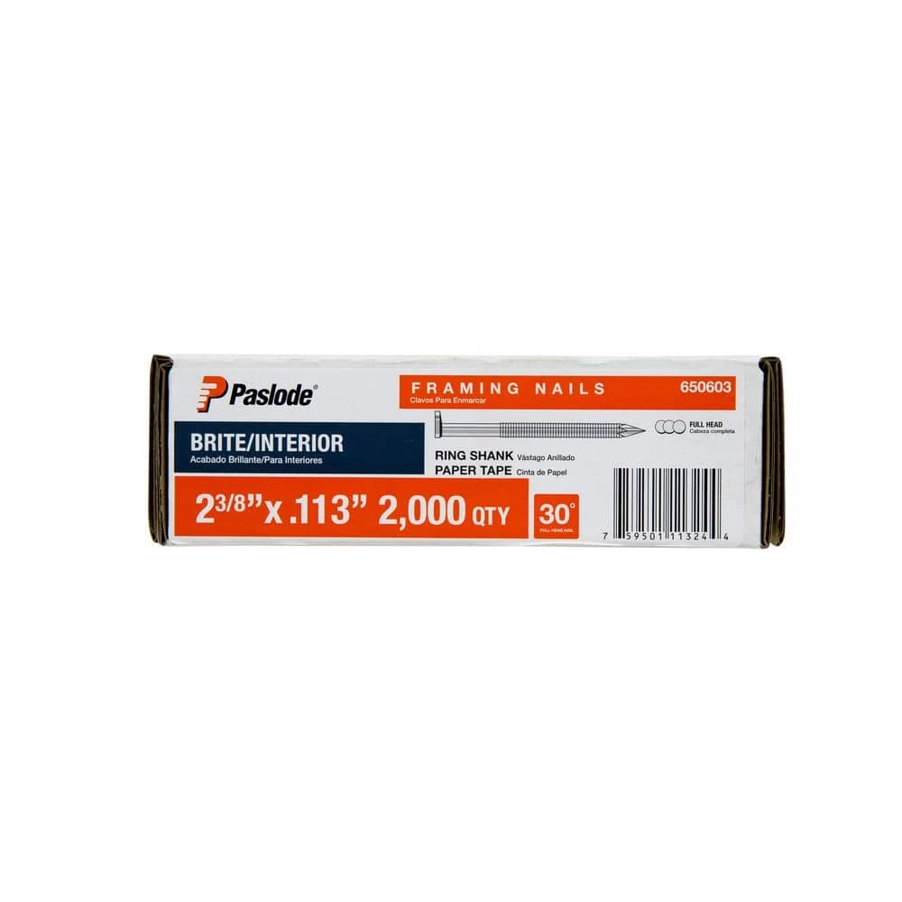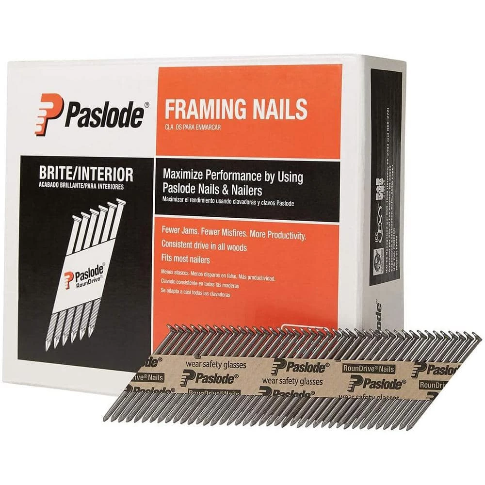 Paslode Brite 2-3/8 in. x 0.113-Gauge 30° Framing Nails are designed and manufactured to match the specs of Paslode framing nailers so your nailer will run smooth, with fewer jams and misfires. Nails drive flush even into the harder woods and LVL’s. To experience non-stop nailing, use Paslode Brite Framing nails for interior framing jobs.