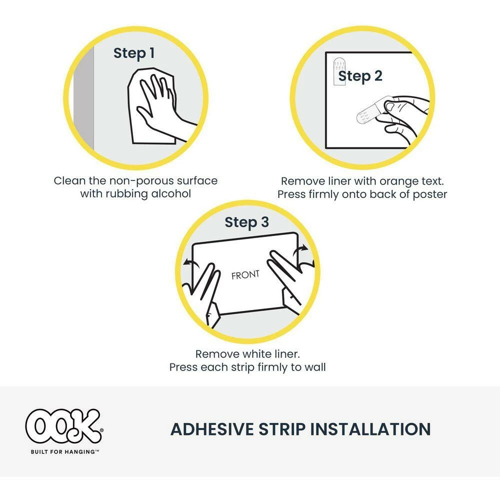 - The OOK adhesive picture hanging kit is ideal for drywall, plaster, and wood materials