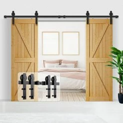 Movisa 96 in. Matte Black I-Shaped Sliding Double Barn Door Kit with Floor Guides
