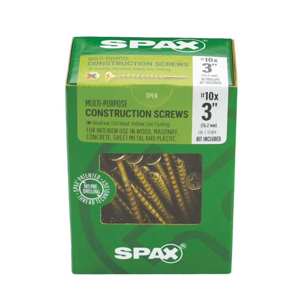 The SPAX Factor – For the craftsman that concentrates on the details, We Work for You. For the Pro that puts qualify first, we help you create stronger connections, enhance performance and improve results when your reputation is on the line. This high performance wood screw is not your average screw. While it is designed for wood applications it is also functional for other materials like masonry, drywall, plastic, and up to 24ga steel. Masonry and Concrete do require pre-drilling. It is made with carbon steel and coated for durability to fasten strongly and securely. U.S made SPAX is your trusted partner for your fastening needs. Do it Once, Do it Right with SPAX.