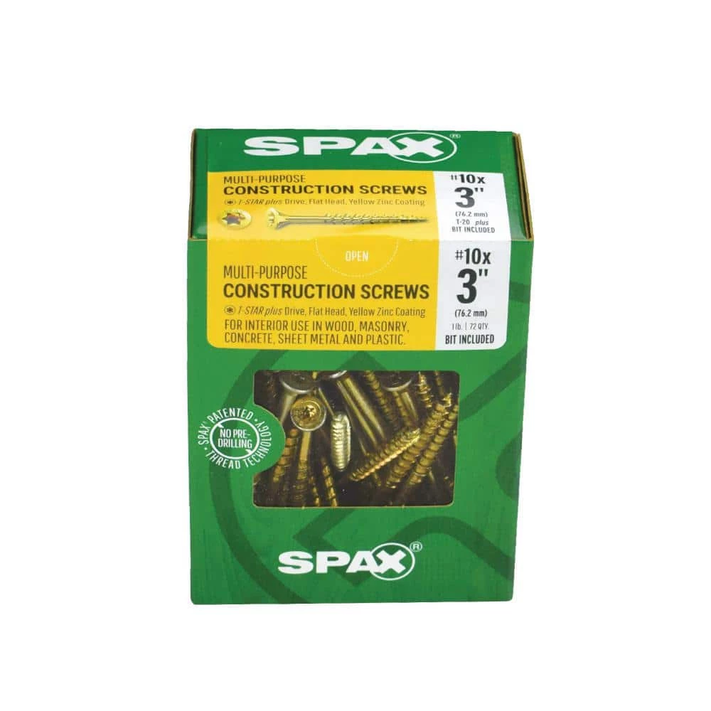 The SPAX Factor – For the craftsman that concentrates on the details, We Work for You. For the Pro that puts qualify first, we help you create stronger connections, enhance performance and improve results when your reputation is on the line. This high performance wood screw is not your average screw. While it is designed for wood applications it is also functional for other materials like masonry, drywall, plastic and up to 24ga steel. Masonry and Concrete do require pre-drilling. It is made with carbon steel and coated for durability to fasten strongly and securely. SPAX is your trusted partner for your fastening needs. Do it Once, Do it Right with SPAX.