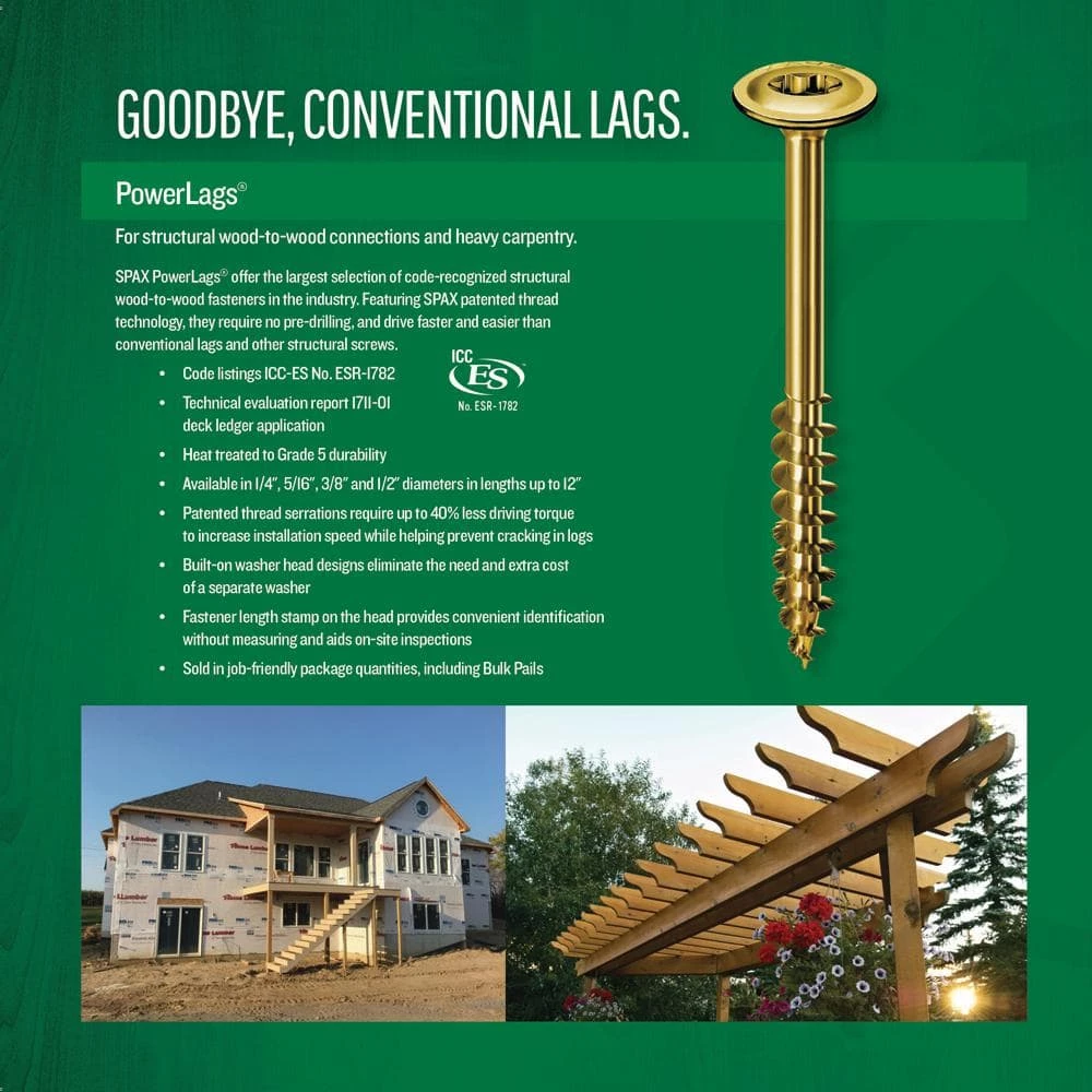 The SPAX Factor – For the craftsman that concentrates on the details, We Work for You. For the Pro that puts qualify first, we help you create stronger connections, enhance performance and improve results when your reputation is on the line. Say Good Bye to your fathers traditional lag. SPAX PowerLags offer superior installation performance and durability over traditional lag screws and carriage bolts for structural wood construction. Made of carbon steel and coated for long term durability to ensure your project endures. SPAX is your trusted partner for your fastening needs. Do it Once, Do it Right with SPAX.