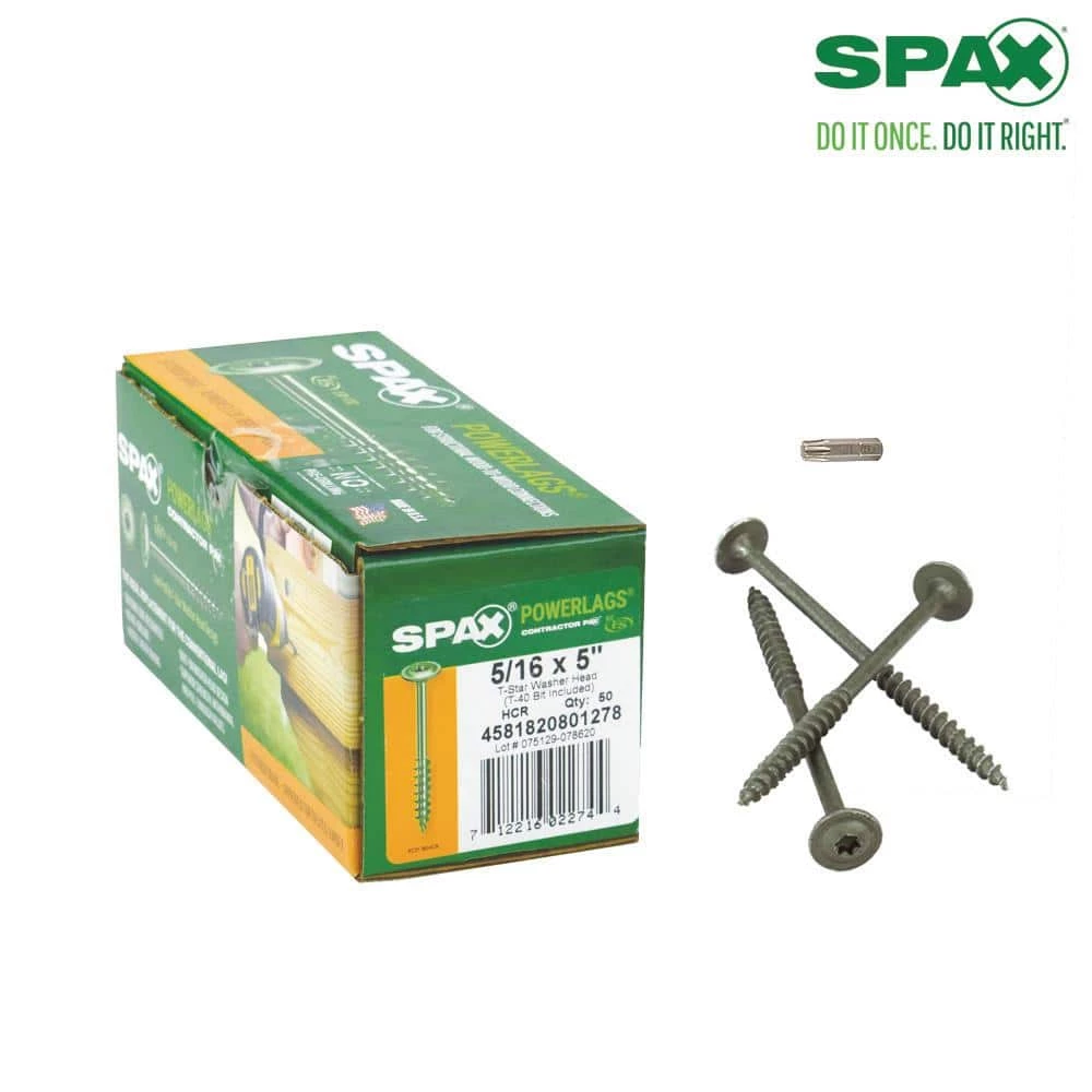 - SPAX 5/16-in. powerLags require a T-star driver bit: T-40 bit